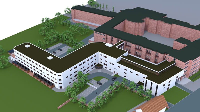 Zentral OP, zwei Bettenstationen und weitere Funktionseinheiten